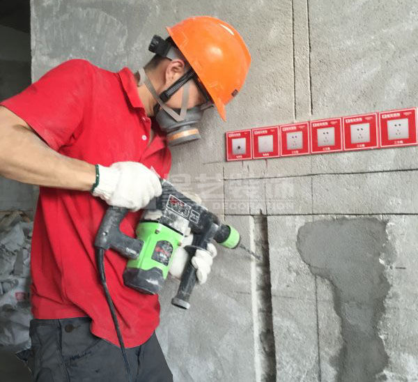 2、剔槽:用電錘鑿出管槽和底盒位置。