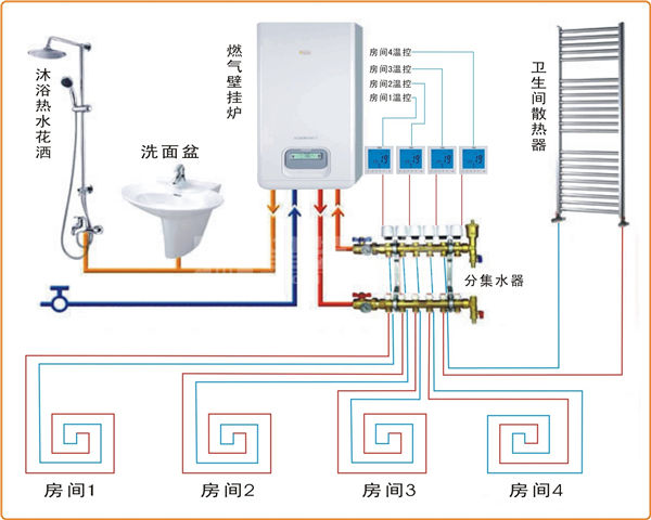 在最后一個(gè)用水點(diǎn)接管返回到熱水器,詳細(xì)見下圖: